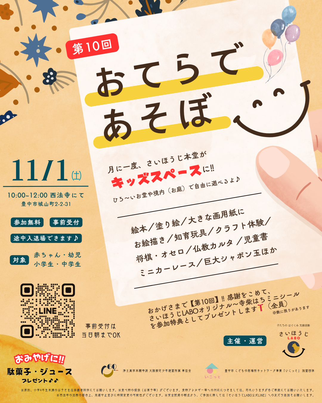 【さいほうじLABO】~おかげさまで第10回~ 11月1日㈯「おてらであそぼ」実施予告