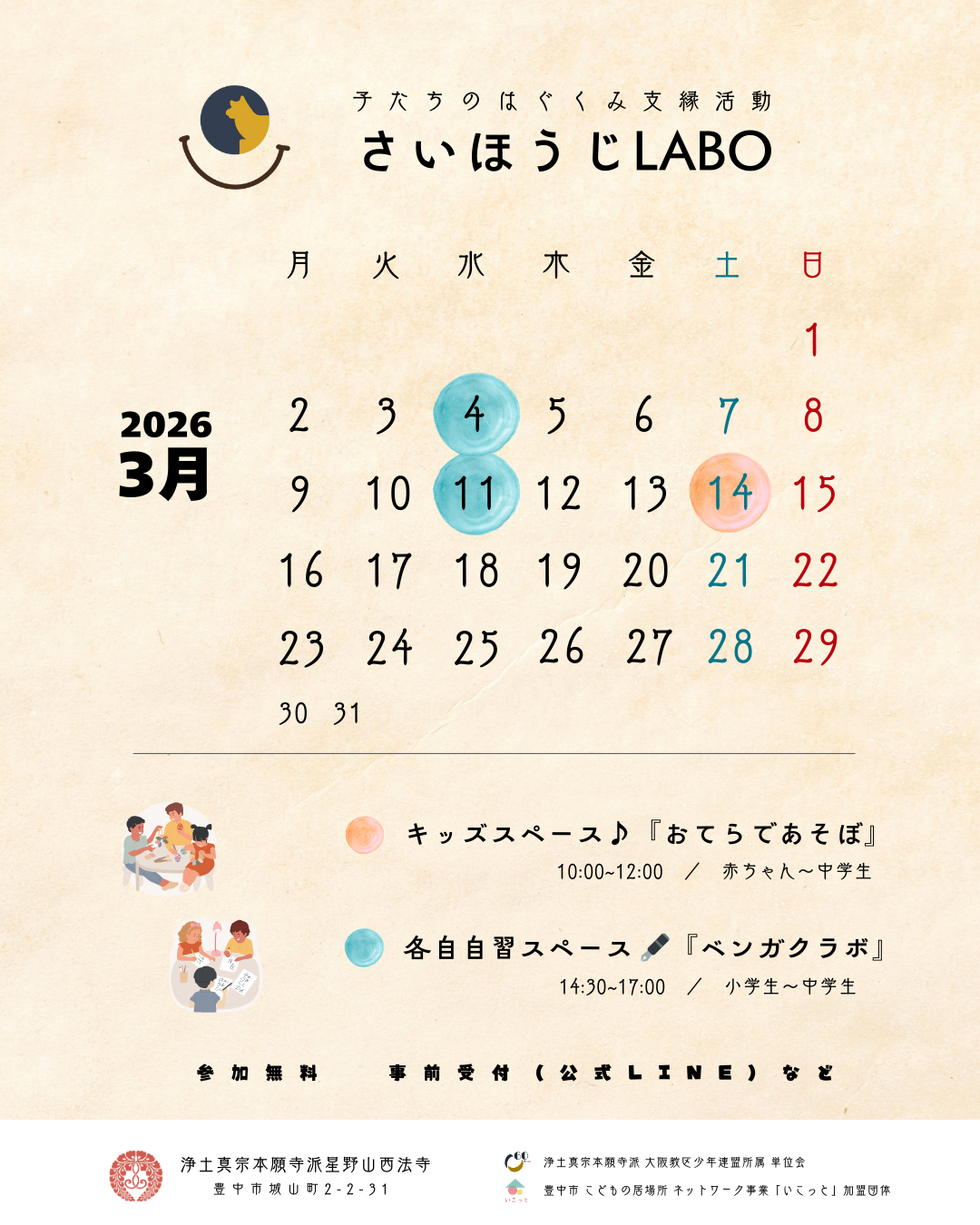 3月4日㈬・11㈬※各日14:30~17:00を予定しています。お友だちも誘ってぜひどうぞ🖋