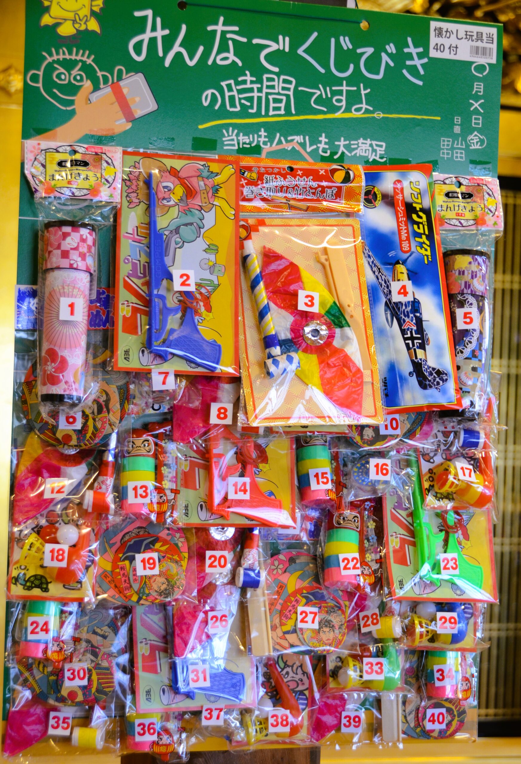 景品は、メンコやコマなど昔ながらの懐かし玩具