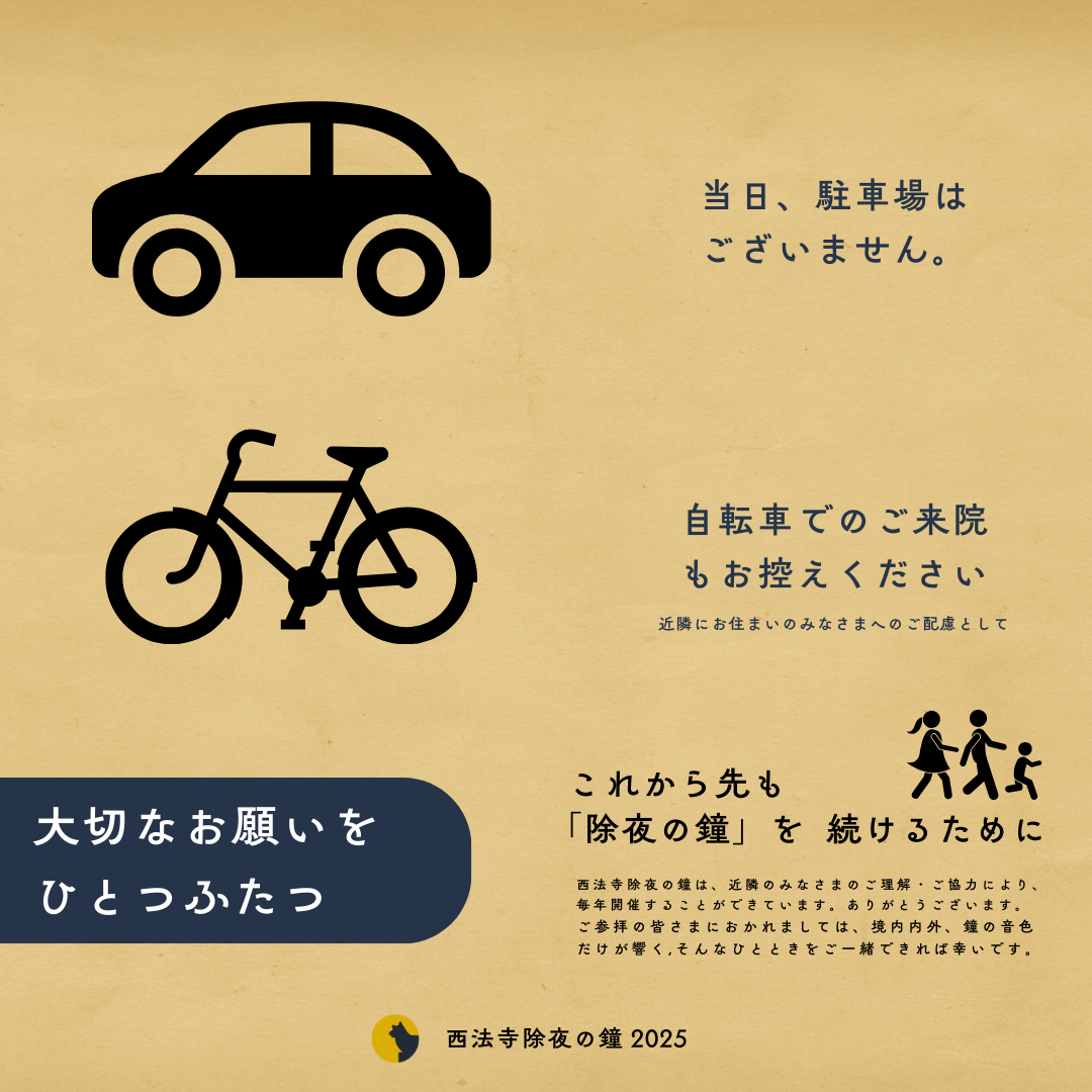 ◆なお、当日の風景(鐘撞き・抽選会など)を撮影したものを、活動報告として西法寺公式WEBサイト並びにSNSアカウントにて公開(一部ボカシ等加工あり)させていただきます。ご参拝にあたってはその旨ご了承ください。